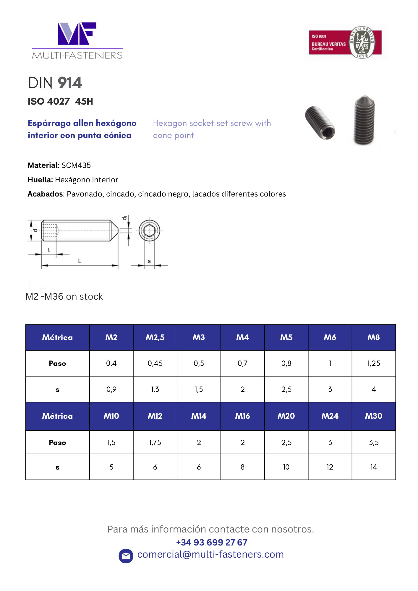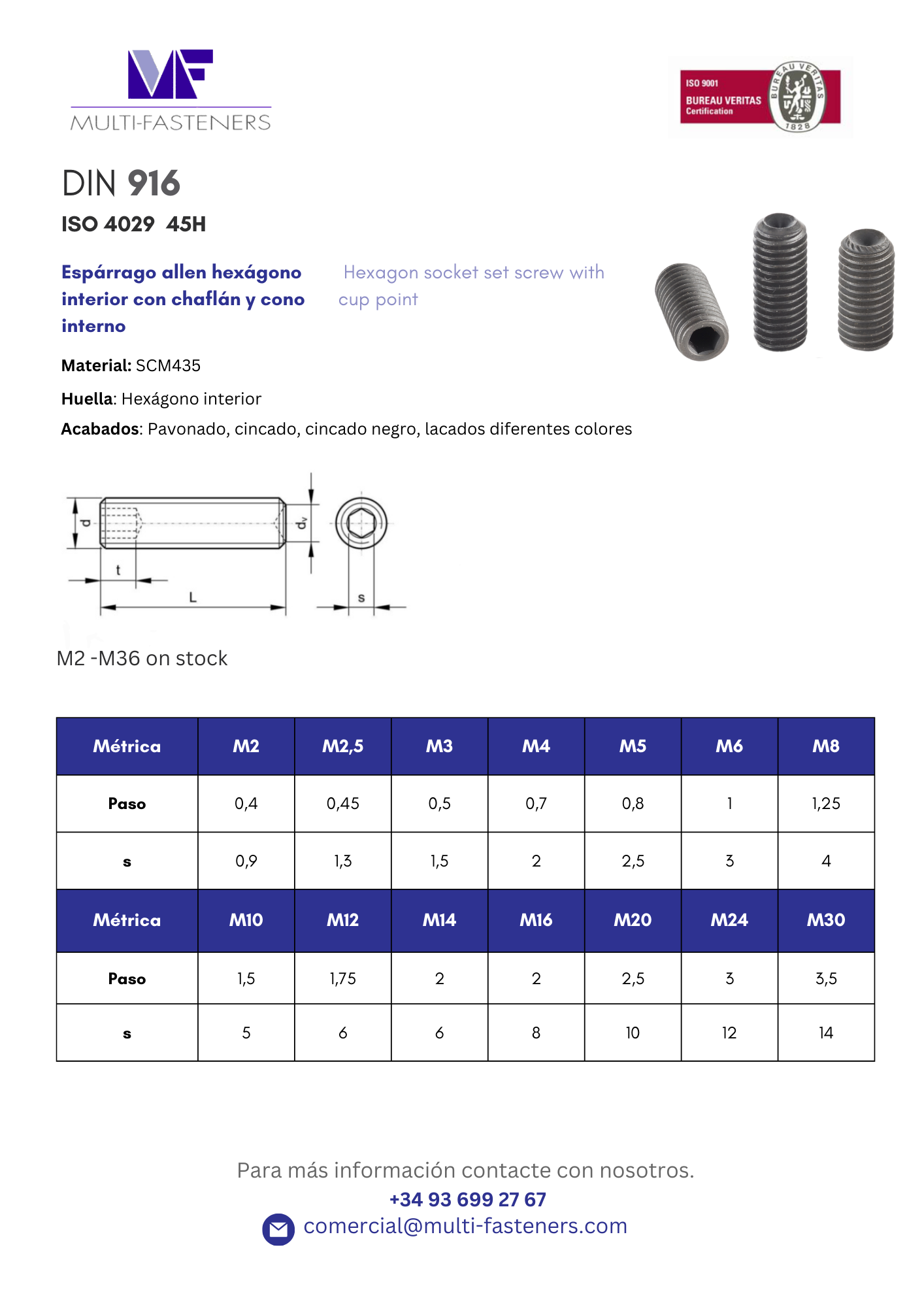DIN 916 – Espárragos hexag. interior con chaflán y cono interno